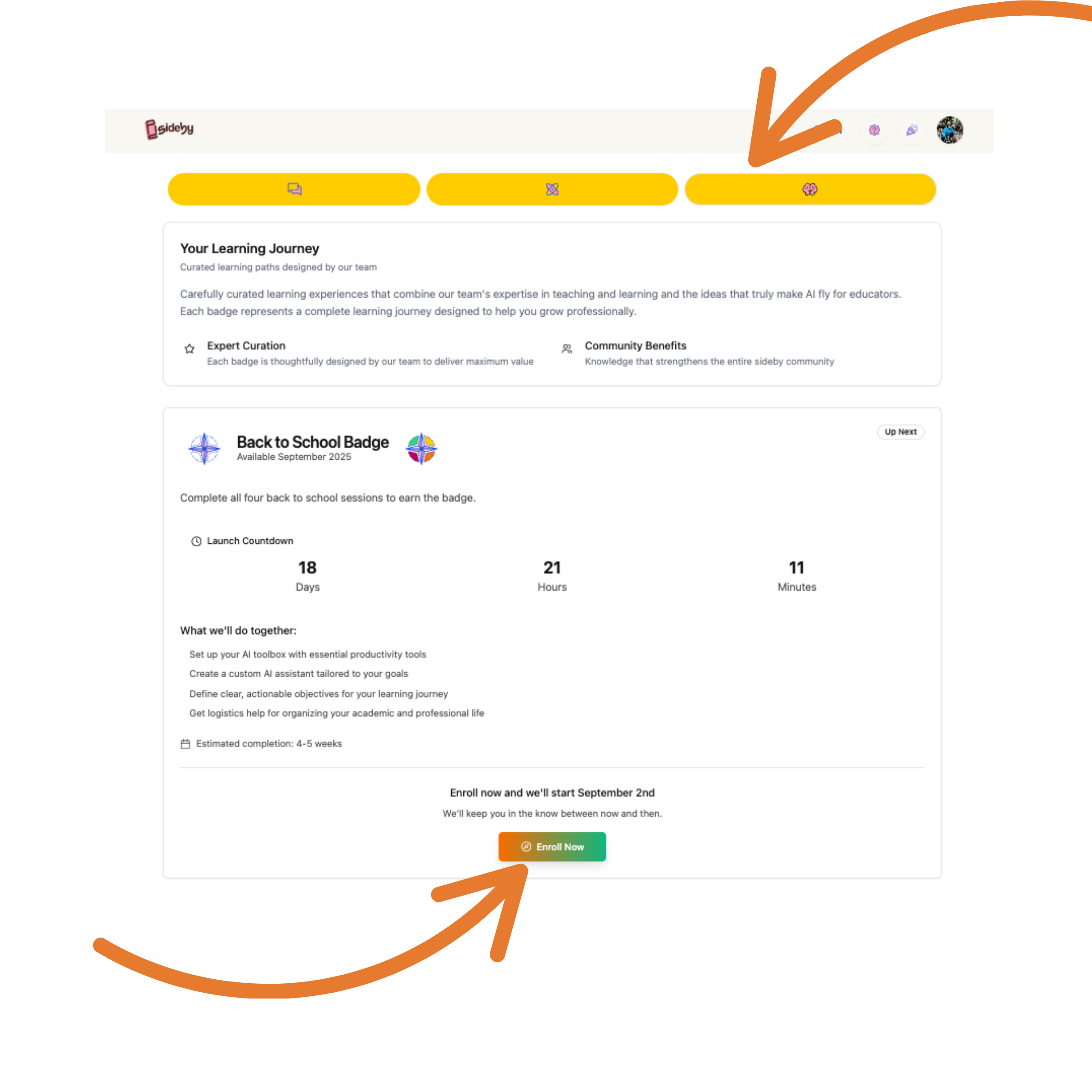 Participants will be invited to optional Office Hours with experts from the sideby team