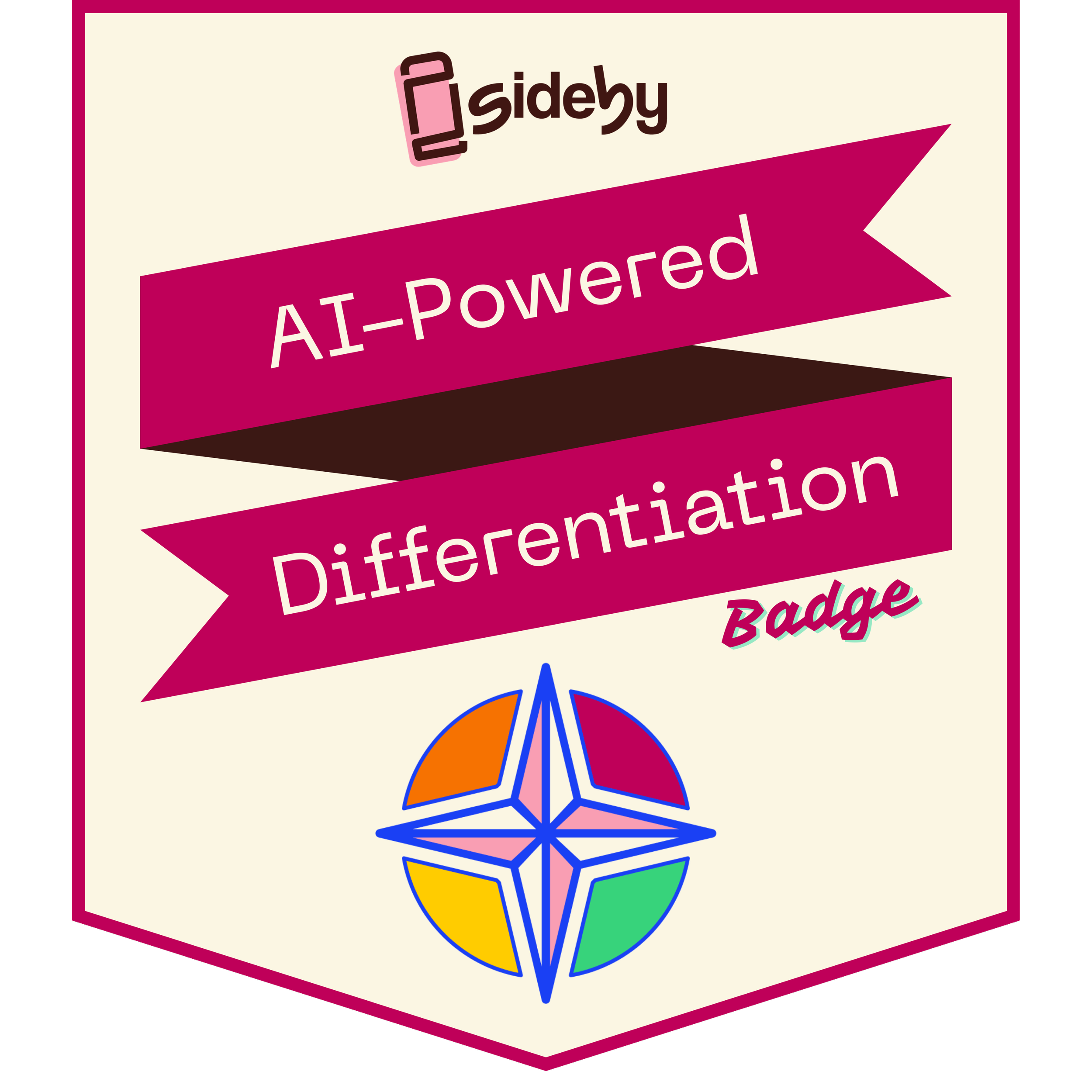 The AI-Powered Differentation Badge is a free recognition for educators who complete a 4-step learning experience inside the sideby app. It shows you’ve built real AI fluency to support diverse learners — not just attended a training.